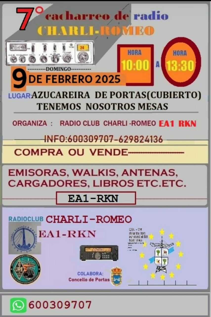 Un nuevo evento organizado por los amigos del Radio Club Charli-Romeo (EA1RKN) en la histórica azucarera de Portas. Nos vemos en Portas el Domingo 9 de Febrero ;-)