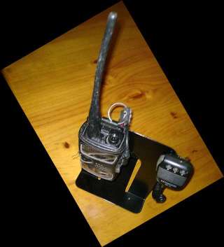 Desde hace años empleo un clásico sujeta libros como soporte para alguno de mis walkies. Hoy en dia pueden conseguirse muy económicos buscando por los bazares.