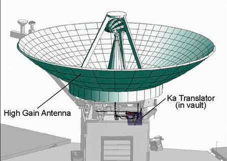 Y a continuacion unos dibujos de las antenas de las que hablábamos. Esta es la antena de alta ganancia (HGA):