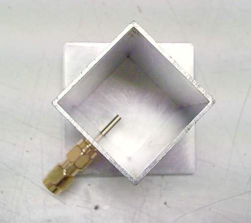 Esta es una foto del guiaondas diseñado y construido a medida para la frecuencia de datos de la sonda (tiene acoplado el convertidor obtenido de un LNB):