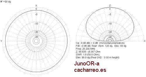 -En la segunda parte, con la sonda ya acelerada hacia Júpiter, modificaremos el patron de radiación de la antena para trabajar en modo NVIS, pasando a radiar entonces casi toda la energia de RF hacia el cénit.