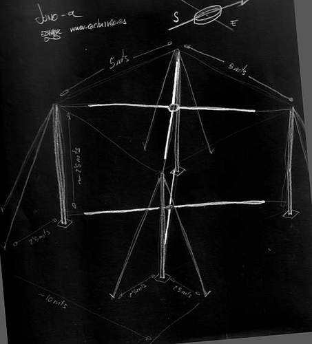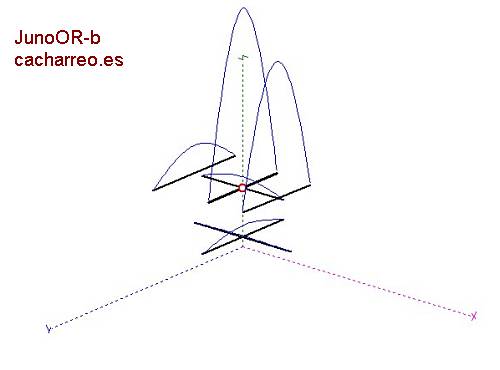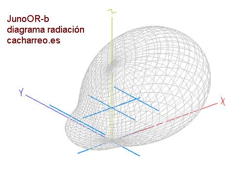 La misma antena trabajrá de dos modos distintos. En el modo "a" radiará casi toda su energía hacia arriba; en modo "b" mostrará un patrón de radiación directivo. La antena JunoOR ha sido diseñada especialmente para esta ocasión, y actualmente estamos acometiendo su construcción, no solo de la antena en si misma, también de todos los elementos de soporte.