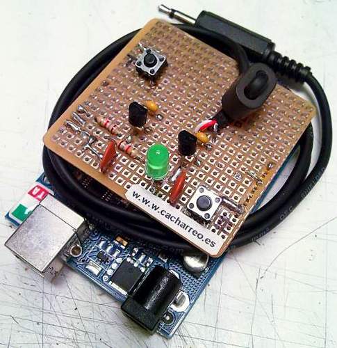 Como plan B para generar la secuencia teníamos preparado un PC con el software QRS y un interface para el puerto paralelo realizado para la ocasión, pero no fué necesario recurrir a el. Nuestro operador telegrafista fué el Arduino, al que dotamos de un "shield" a medida para realizar la función de llave telegráfica y poder manejar el transceptor. Aqui podeis verlo: