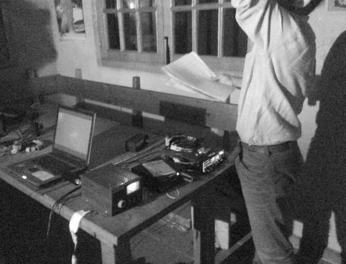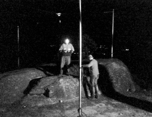 Por eso, a pesar de no haber realizado una prueba completa de la estación, el funcionamiento fue el esperado. Todos los elementos y soportes de la antena se acoplaron bien y en pocos minutos, dada la complejidad mecánica de la instalación, la estación estaba operativa. Estas son unas fotos del momento.  Estan un poco flojas de luz por que el lugar no dispone de iluminación adecuada (bueno, no hay ninguna iluminación). Aunque con la estupenda noche que disfrutamos, con un cielo abarrotado de estrellas, tampoco la extrañamos mucho.