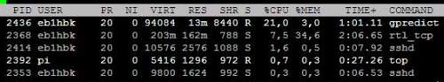 - Y este es el detalle de la carga sobre sistema del Raspi. Para un streaming de un 1 MHz la carga sobre el pequeño procesador AMR es menor de un 10%:
