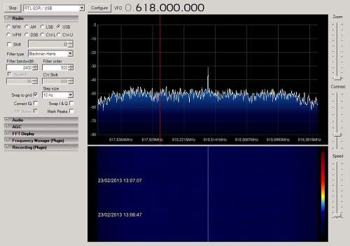 Sintonizando la bajada de del LNB en 618 MHz USB: