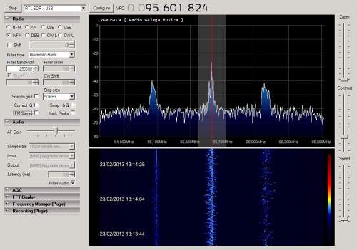 Aqui unas capturas de pantalla del programa SDR Sharp funcionando con el receptor TDT como receptor SDR de ámplio rango.