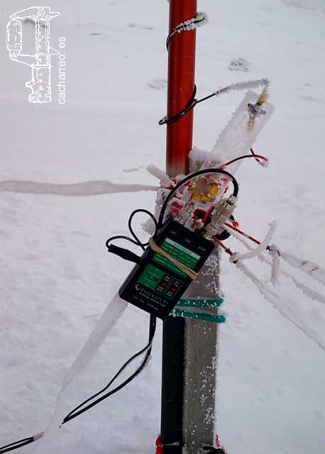 Con temperaturas tan bajas los materiales muestran un comportamiento muy diferente del que estamos acostumbrados. El coaxial RG-58 pierde casi por completo su flexibilidad y se convierte en un muelle que se resiste a ser estirado. El caso del cable tipo rojo-negro que empleamos para la antena de caña y los radiales de la Workman es aun mas extremo. El recubrimirento aislante se vuelve quebradizo y se rompe al flexarlo, comprometiendo así la integridad de los conductores interiores. Lo que nos está funcionando muy bien son los radiales de cinta de pastor eléctrico.