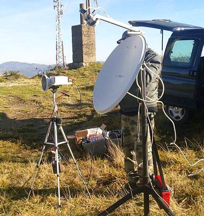 Participamos desde Pontevedra (IN52UI) EA1FBU y EA1HMK, desde Orense (IN52XM) EA1HBX, EA1HVT y EB1HBK, y desde Coruña (IN53RE) EA1BLA. Realizamos actividad en 10 GHz y 2,3 GHz. Comenzaré por 2,3, por ser la mas breve y para ilustrar lo que supone la actividad de radio en equipo, a juzgar por la composición de la estación de Orense.
